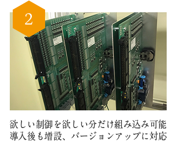 - 増設対応型のシステム設計になっているため、お気軽にご相談ください。また、制御ソフトのバージョンアップにも対応した設計になっているため、制御システムの買い替えをしなくても最新ソフトへ更新も可能です。